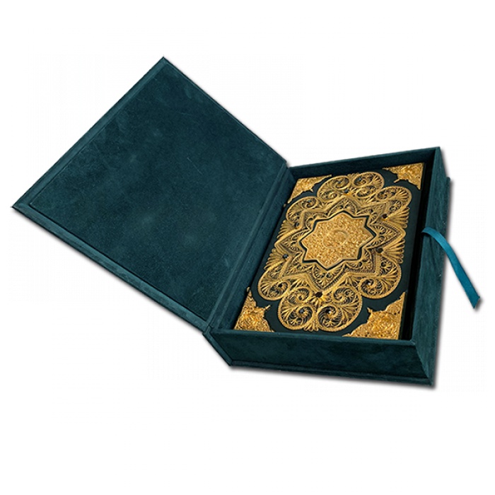 | Исполнение: | Филигрань ручной работы, покрытая золотом, гранаты, художественное литье, покрытое золотом. Книга упакована в шкатулку из натуральной замши ручной работы |