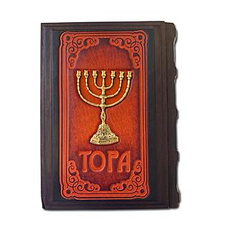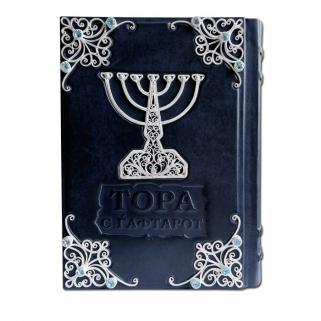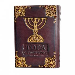 ТОРА с Гафтарот с филигранью (серебро) и топазами (Подарочная книга в кожаном переплёте)