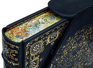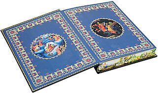 | Исполнение: | Художественная вставка. Дублюра. Форзацы из дизайнерской бумаги. Мелованная бумага. На корешке 4 бинта. Каптал. В комплекте подарочный кожаный футляр с тематическим тиснением |