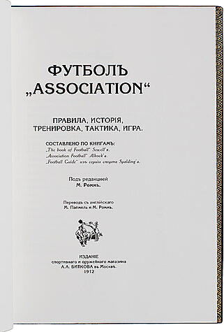 Это первая полноценная книга о футболе на русском языке. Книга вышла под редакцией выдающегося футболиста (позже тренера) начала XX века Михаила Ромма.