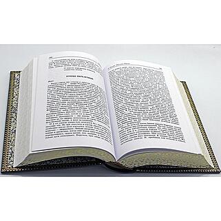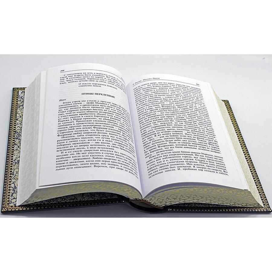 | Описание переплета: | Уникальное рельефное тиснение, исторический французский стиль переплета, полностью ручная работа. Обрезы книжного блока отшлифованы, тонированы с нанесением золотого узора |